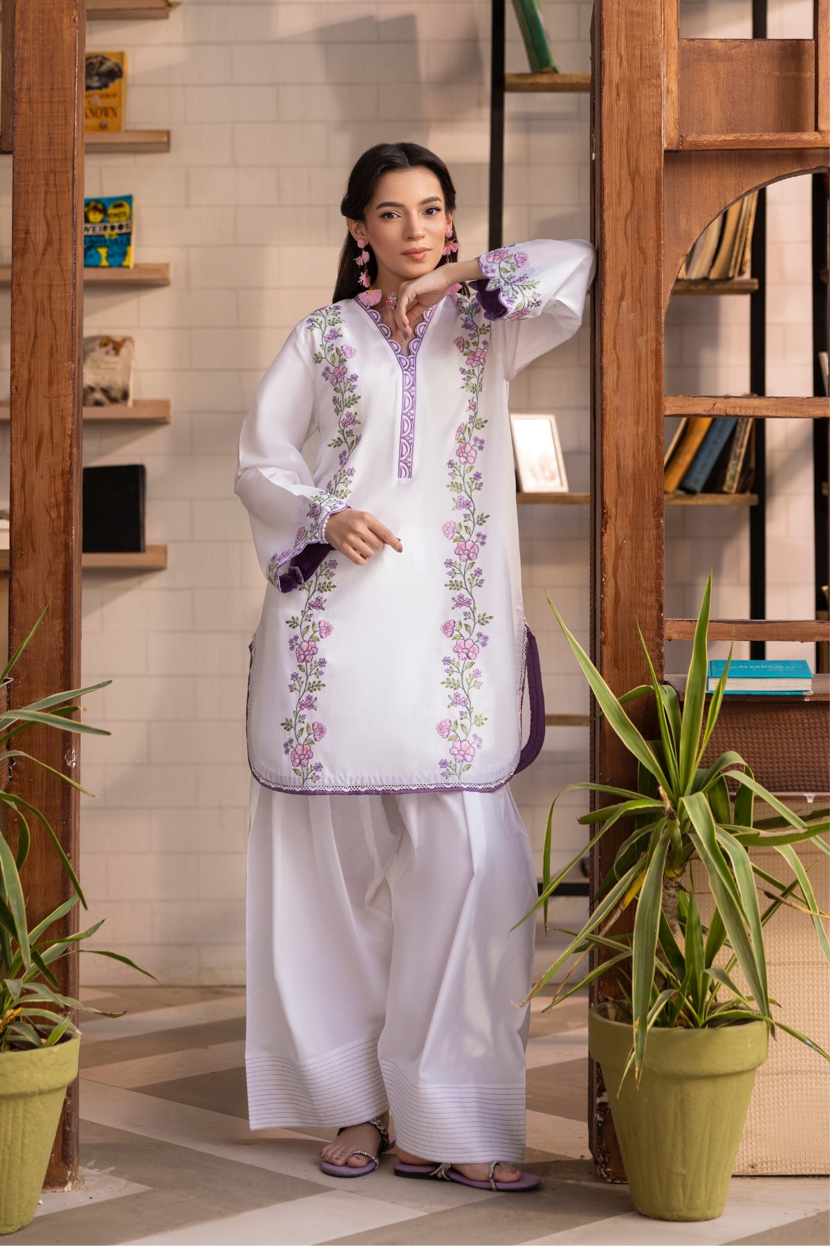 Keep your look fresh and refined with this elegant white ensemble. Designed for women who appreciate subtle detail and classic silhouettes, it offers a clean, polished feel that works beautifully for daytime events and festive occasions.