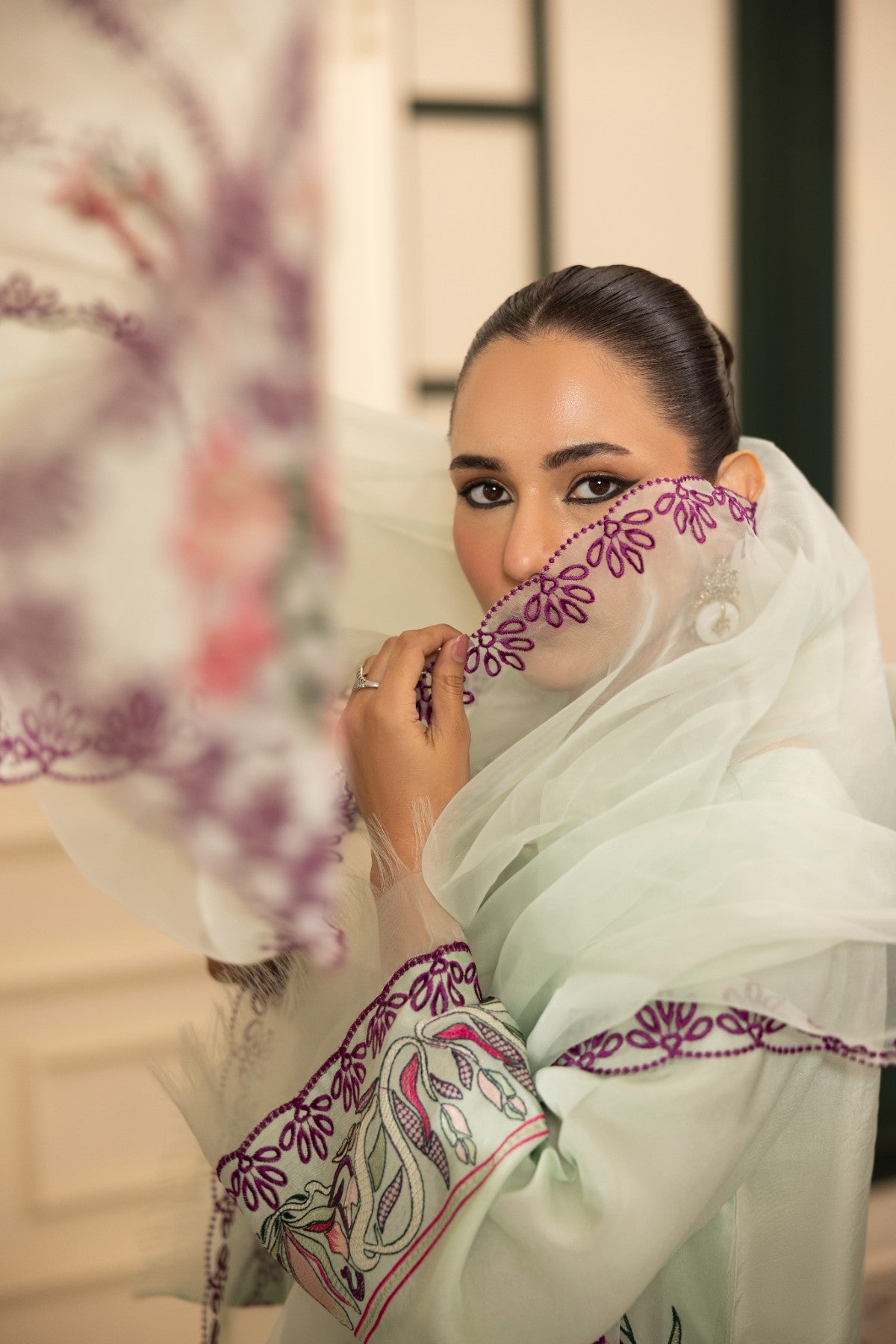 Heavily embroidered scalloped dupatta