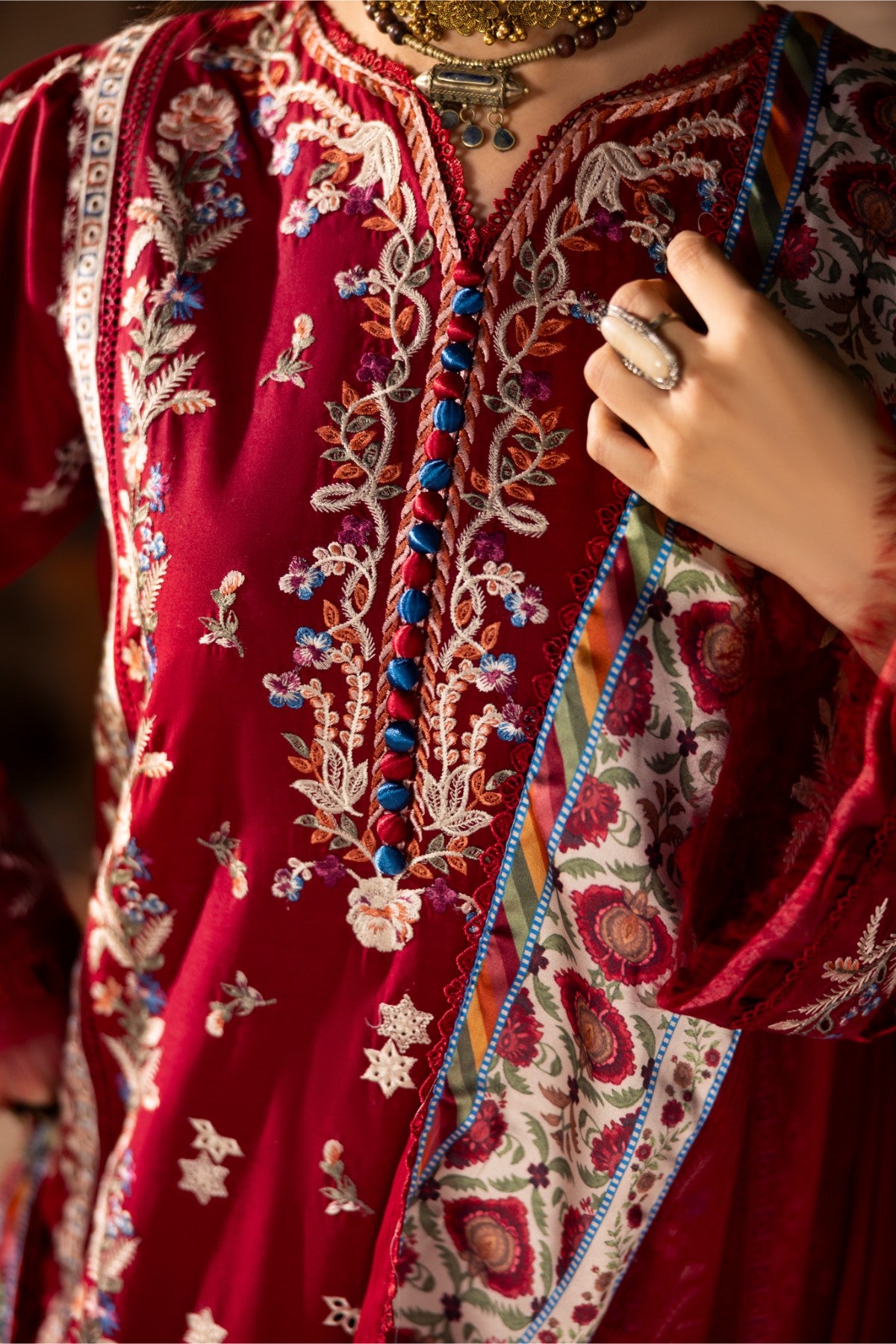 Dyed laces for sleeves, side slits and dupatta